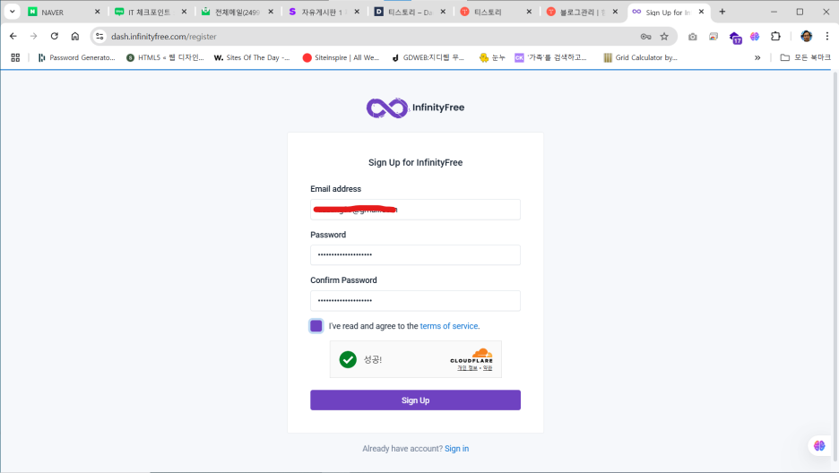Create Account 버튼을 클릭하면 다음 페이지로 넘어 가게 됩니다. 이 과정은 무료로 임대 서버를 사용하기 위한 것입니다.