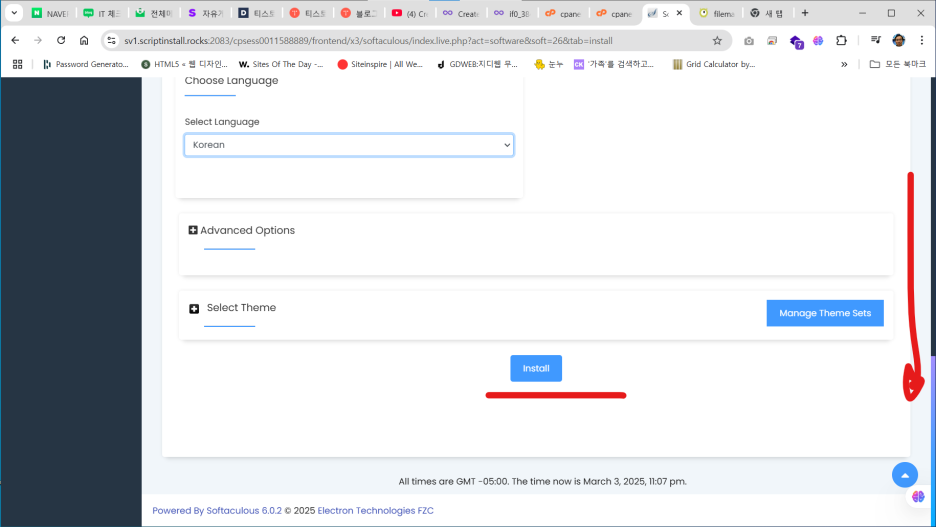 언어를 선택하는 란이 보이실 겁니다. 저는 영어 에서 한국어로 선택했습니다. 페이지를 아래로 스크롤 하세요.