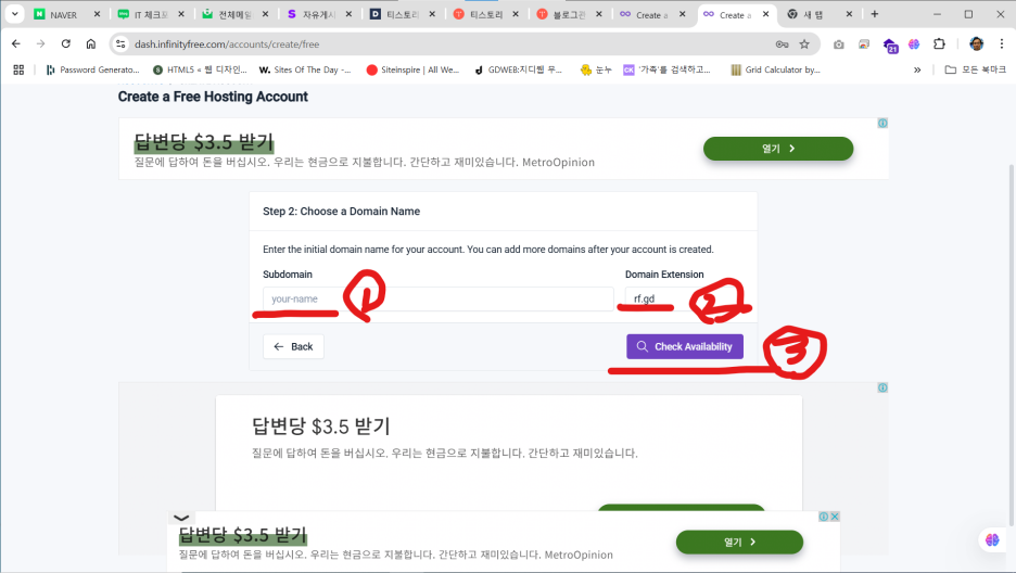 그리고 도메인이 선택이 완료 되었다면 아래 Check Availability 버튼을 클릭해서 승인을 받아야 합니다.