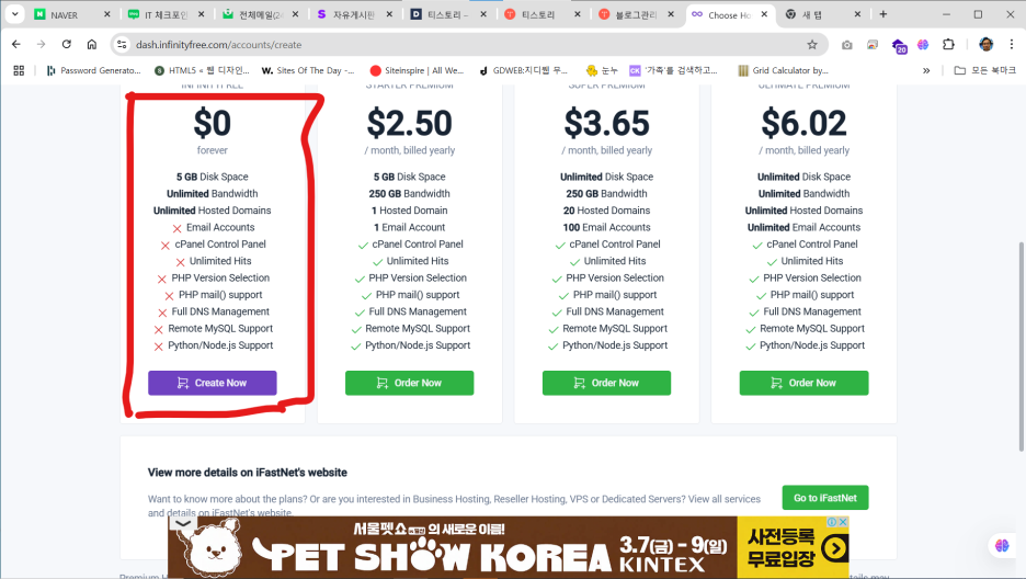 이 페이지는 무료로 임대 서버를 사용하기 위해서 해당 페이지에서 선택을 해야 합니다.