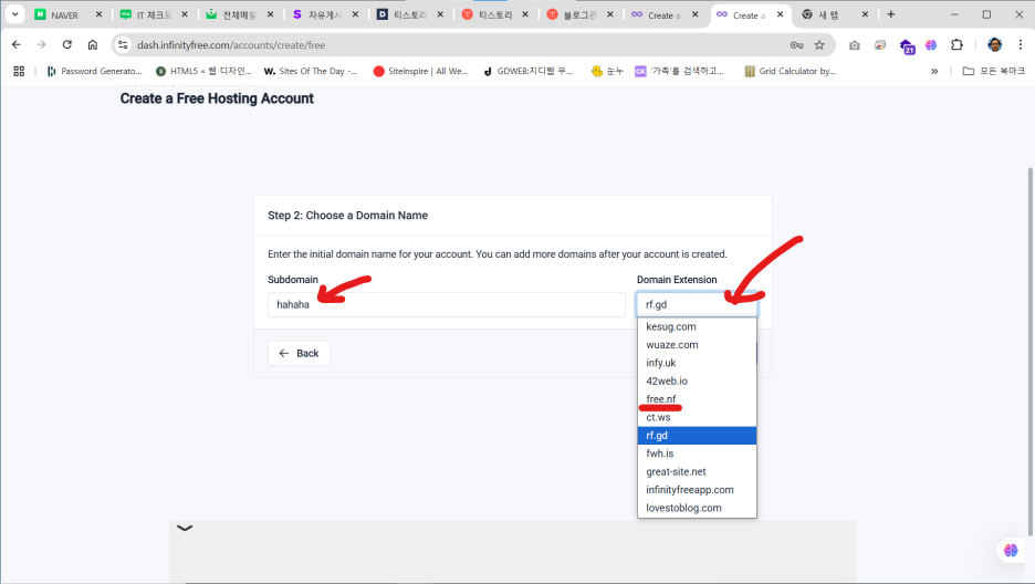 2번을 클릭하면 아래와 같은 페이지가 보이는 데 여기서 free.nf 를 선택 했습니다.