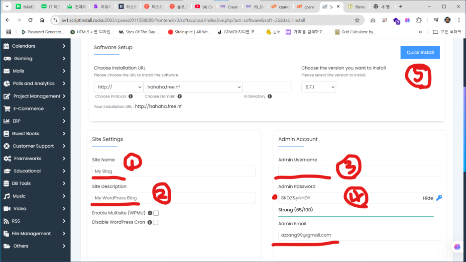 표시된 부분을 클릭하게 되면 우리가 원하는 워드프레스(Wordpress)를 설치하게 됩니다.