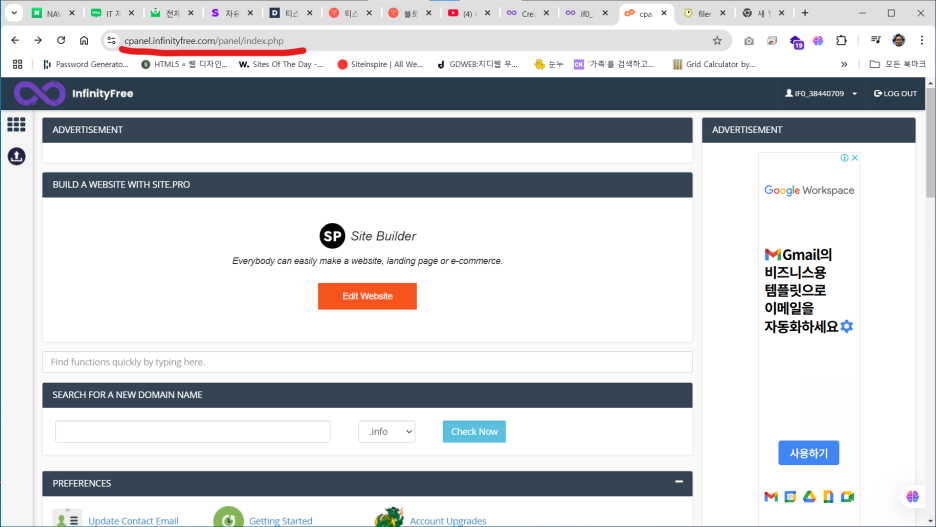 주의~~ 자신의 도메인 주소와 비밀번호는 아래 페이지에서 꼭 기억해야겠습니다.