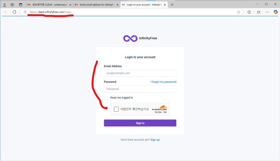 해당 페이지에서 메일 주소와 비밀번호를 입력하고 로그인하면 다음 페이지가 보이게 됩니다.