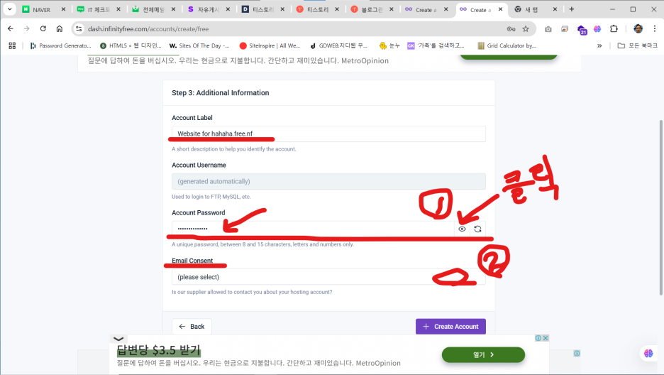 이제 마지막으로 Create Account 라는 버튼이 남았습니다.